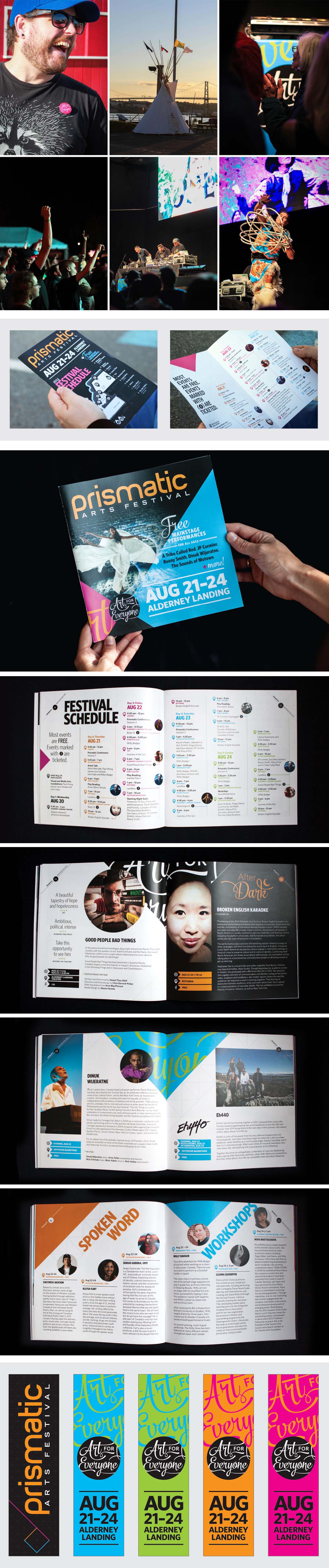 To reach these goals, the 2014 festival allowed the general public free admission to the bulk of Alderney Landing’s main stage performances. Congruently, I worked on a brand standards guide for Onelight Theatre and Prismatic. As I crafted the messaging, a concept emerged that so completely embodied the culture of both entities—Art for Everyone. This became the festivals ethos and the visual identity for the festival quickly evolved from there.